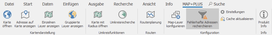 Über die Funktion "Fehlerhafte Adressen recherchieren" können nicht richtig geokodierte Adressen gefunden werden.