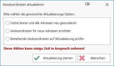 Mit diesem Menübefehl wird für alle Adressen die Geokoordinate ermittelt.