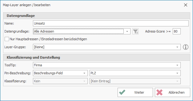 Diese Auswahl ist immer dann sinnvoll, wenn Sie den gesamten Adressbestand auf der digitalen Landkarte visualisieren möchten.