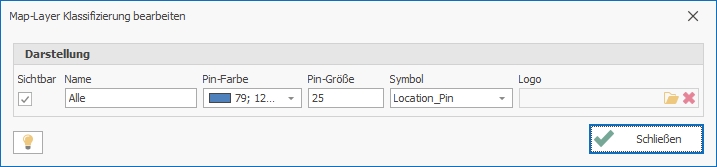 Sobald Sie das Fenster über den Button Weiter verlassen, gelangen Sie in die Einstellungen des Map-Layers ohne weitere Klassifikationsmöglichkeiten.